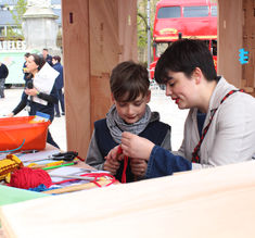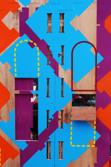 and coordinating the manufacturing, design and assembling the components on-site. The structure was inspired by the pattern making by the textile makers within, creating a series of components, easily legible for the festival goes to understand the construction and to celebrate the joy of making.